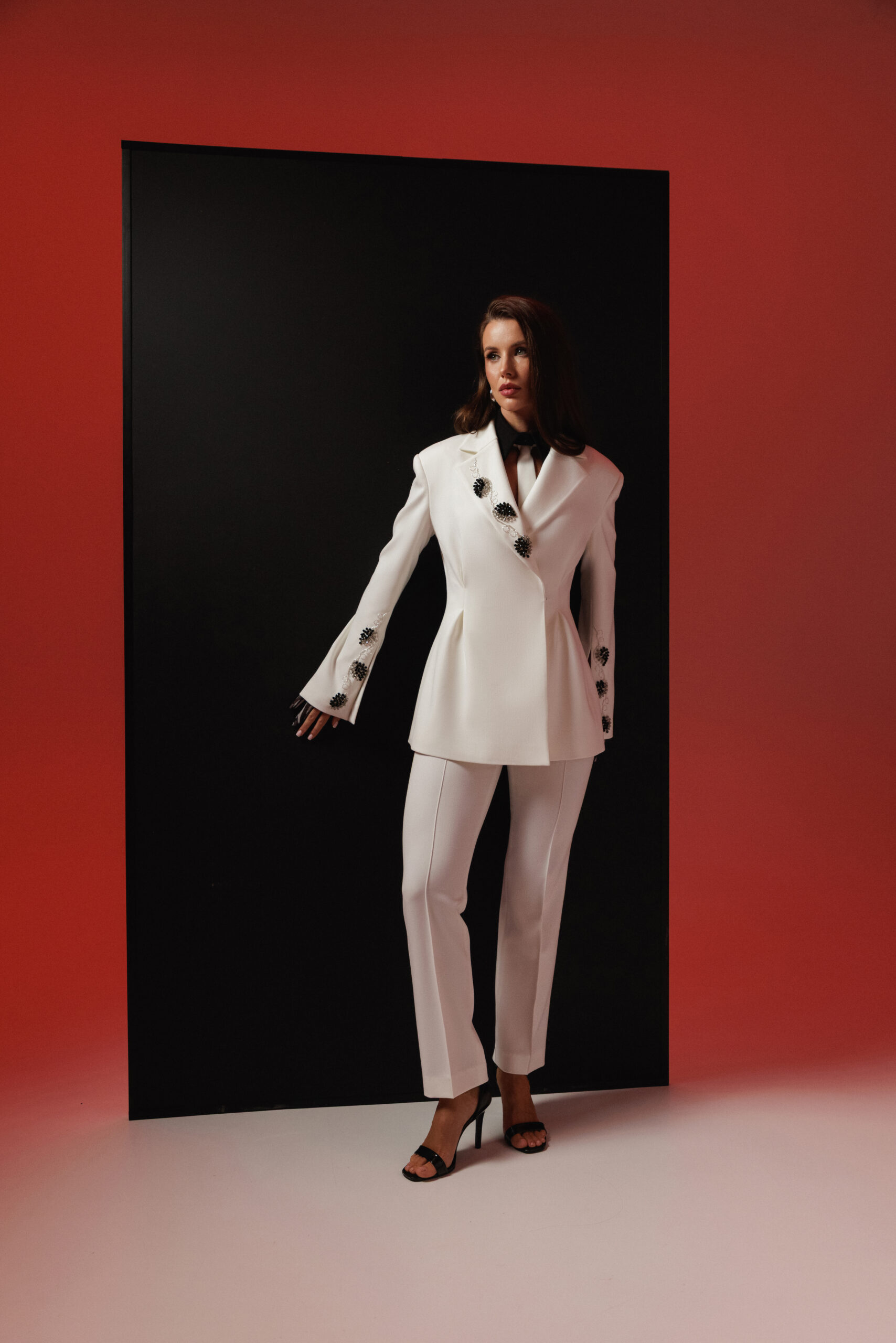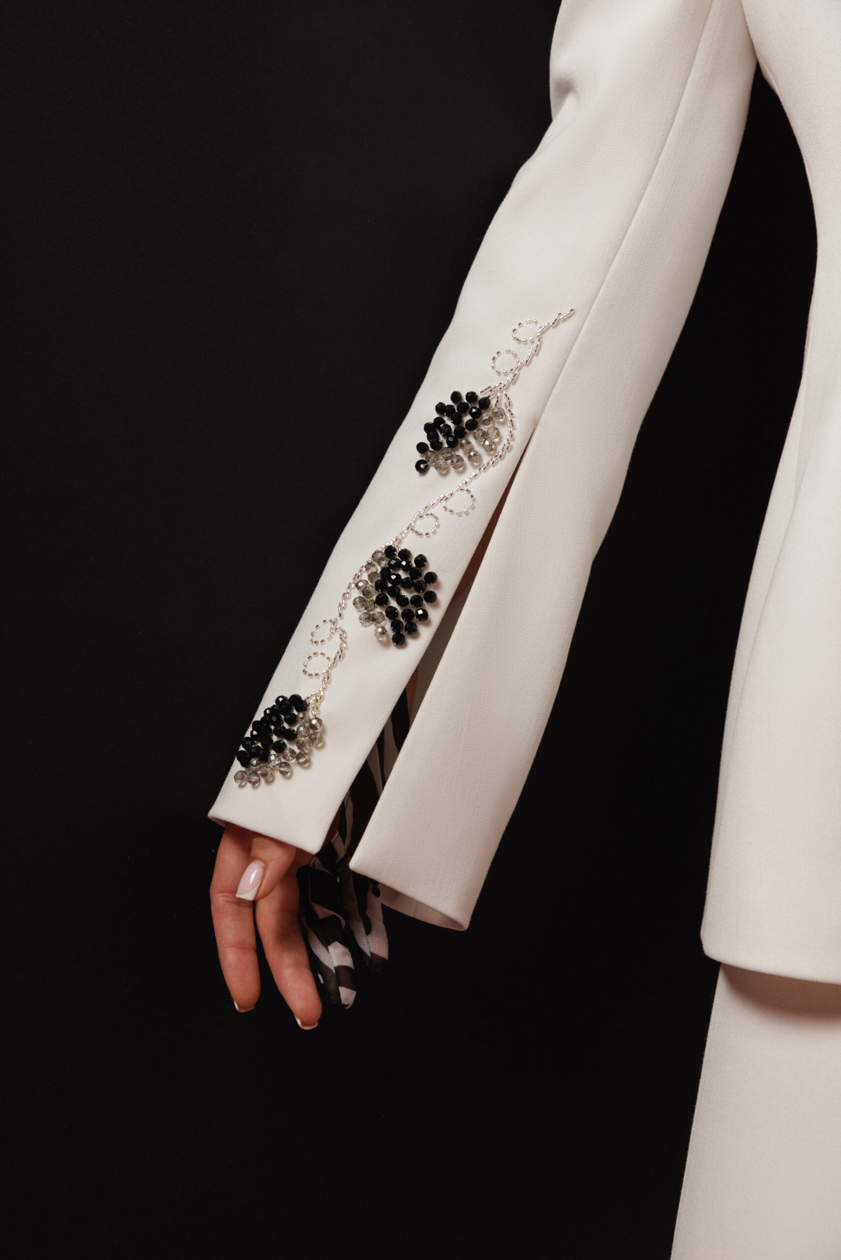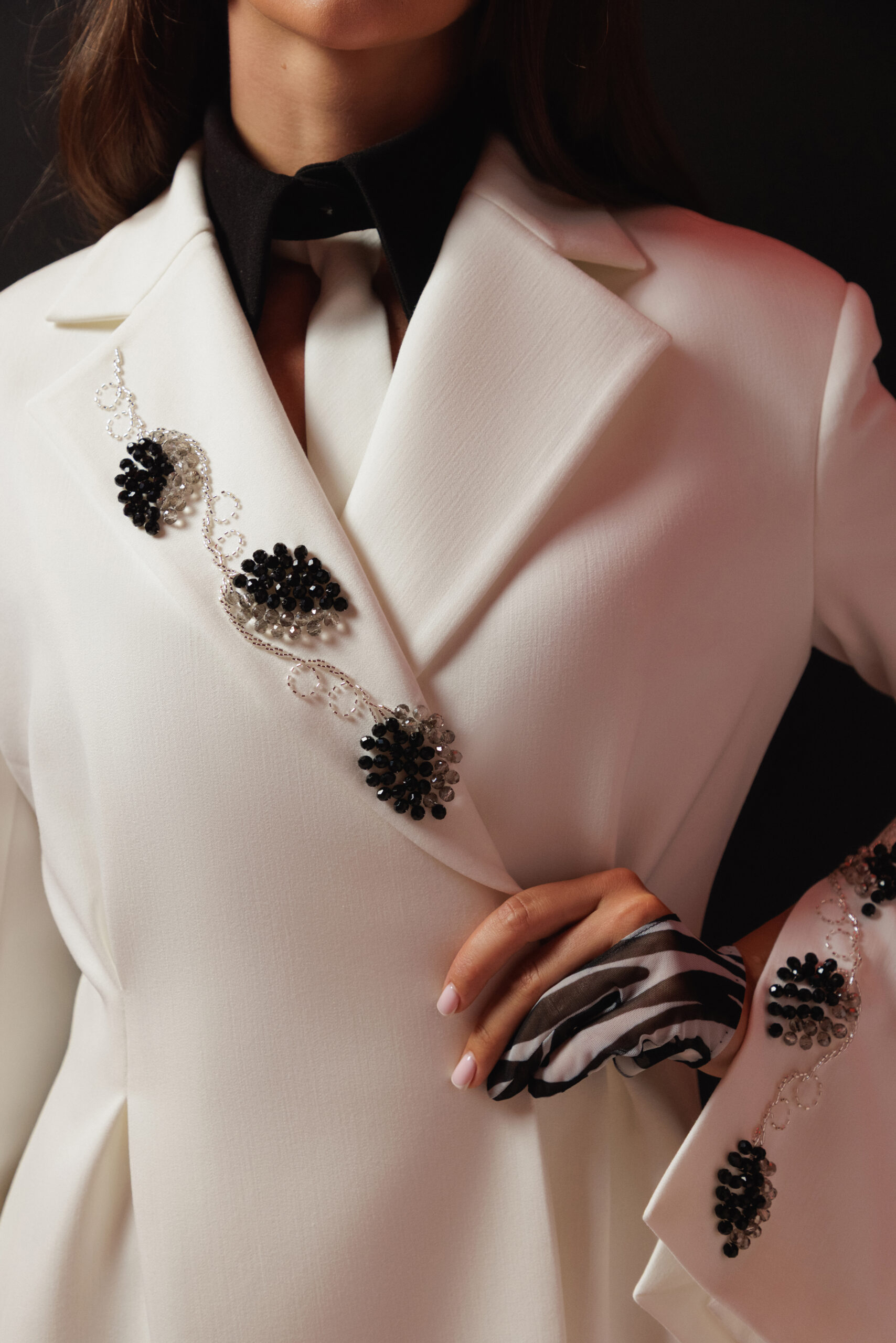 Білий жакет із ручним оздобленням — гармонія форми й сили деталей.