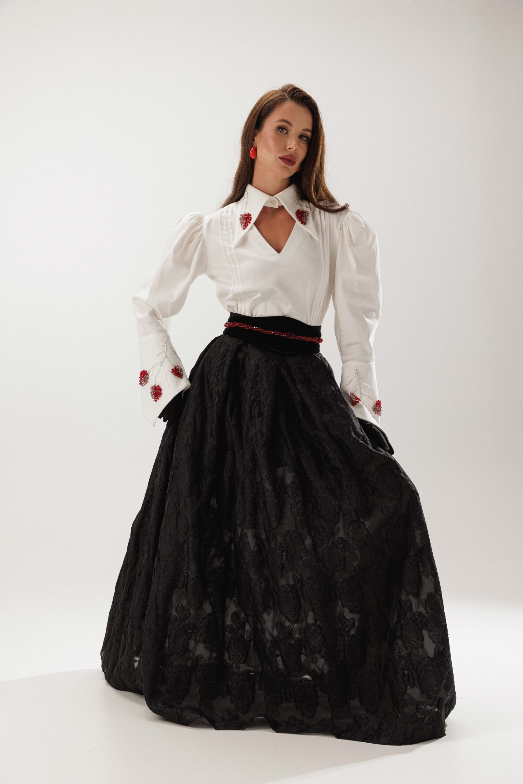 Довга органзова спідниця з вишитими квітами.