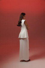 Родзинка виробу — обгорнена асиметрична застібка, що створює акцент на силуеті.