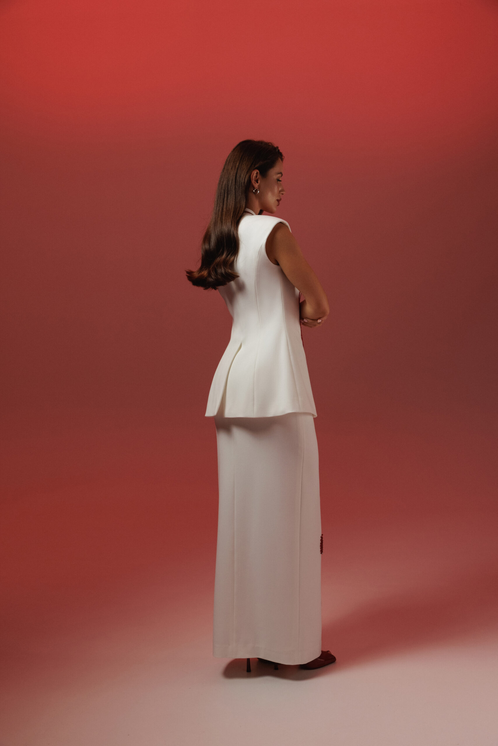 Довга спідниця, з високою посадкою та шлицею спереду.