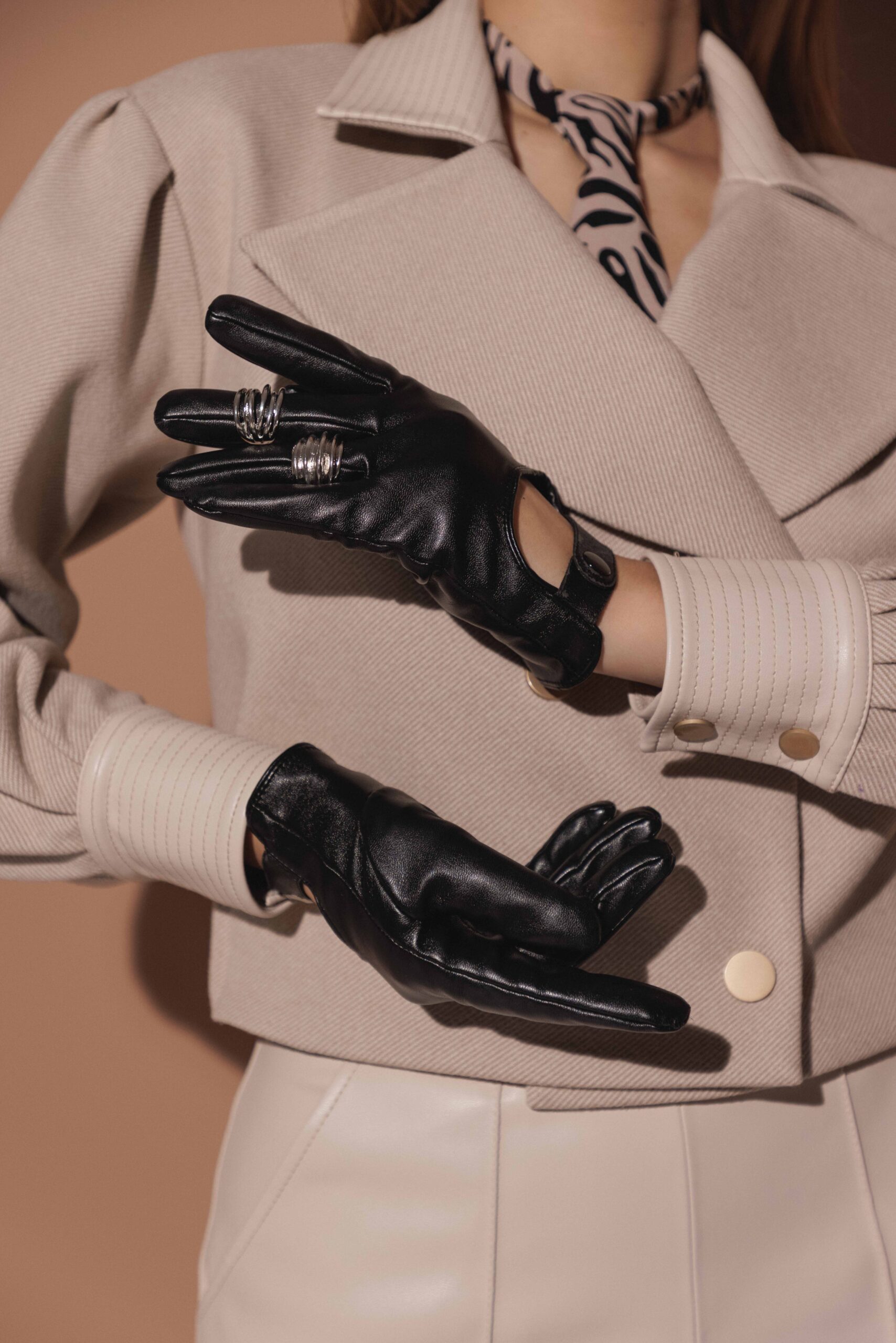 Класичні шорти, із преміальної екошкіри, з високою посадкою та врізними кишенями.