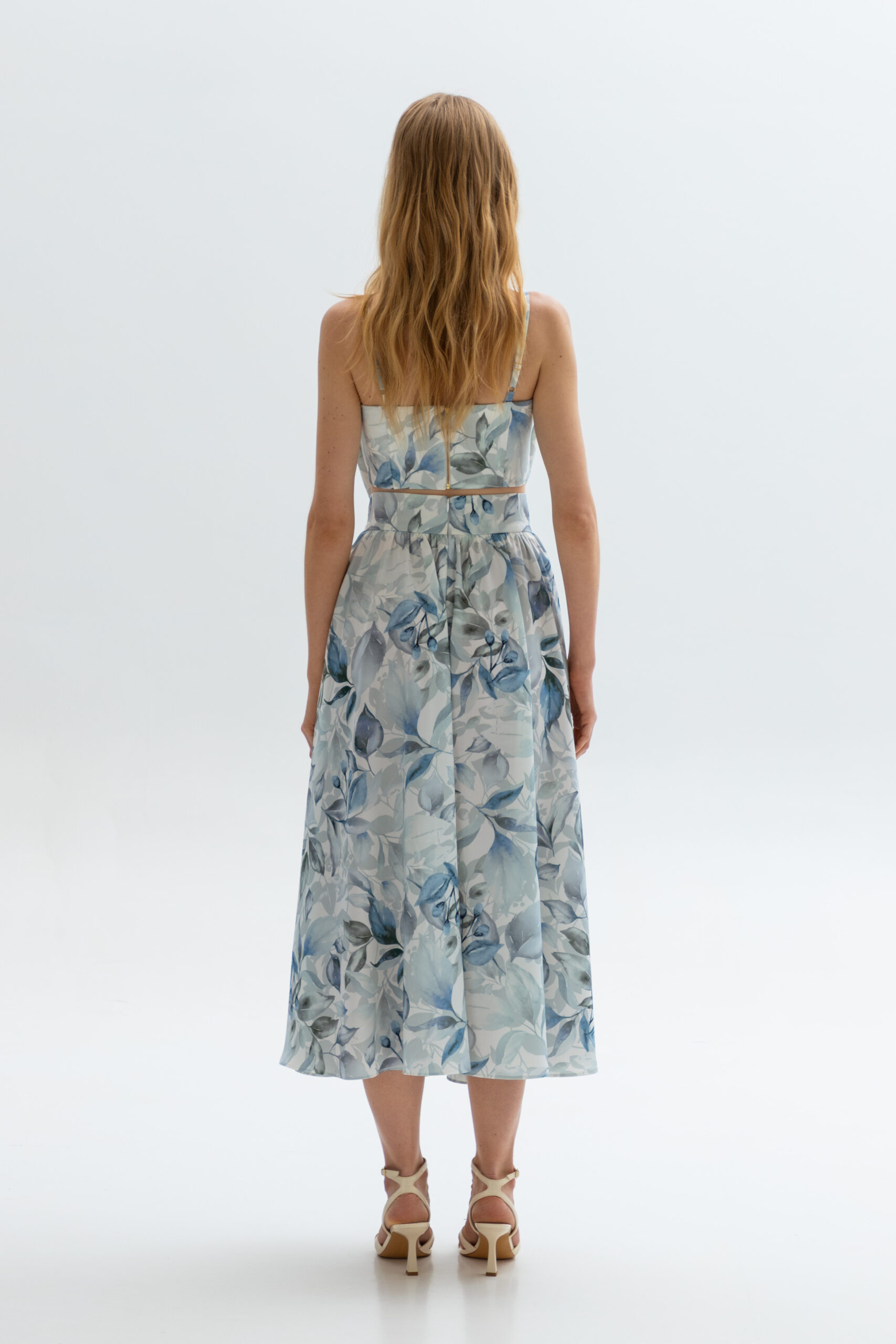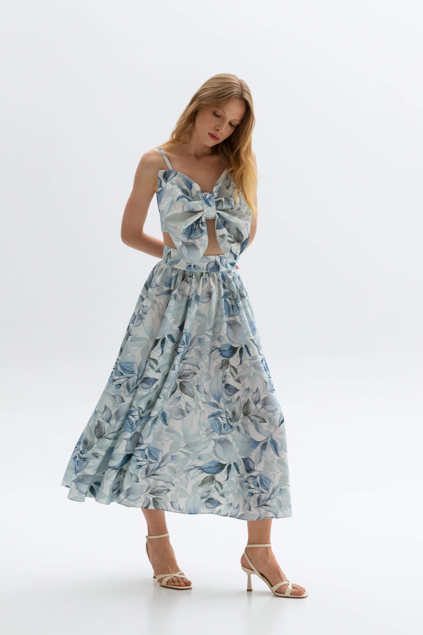 А акварельний принт у відтінках неба й листя — мов подих природи, зафіксований у русі.